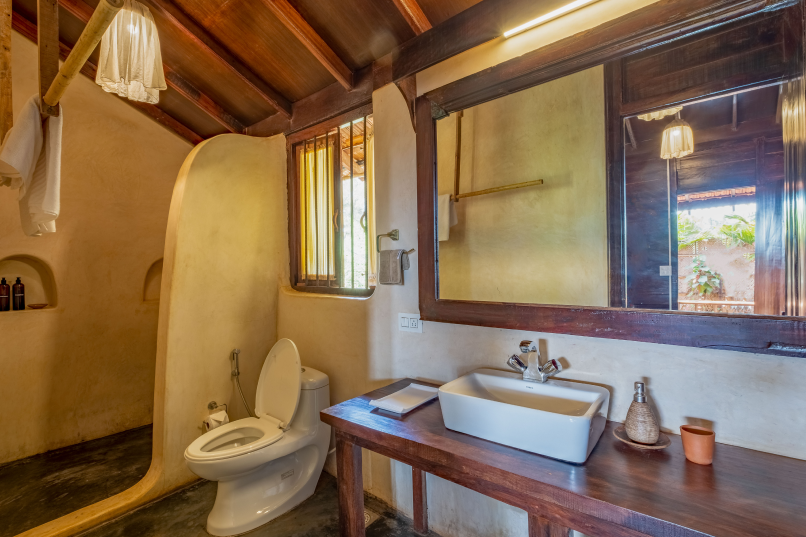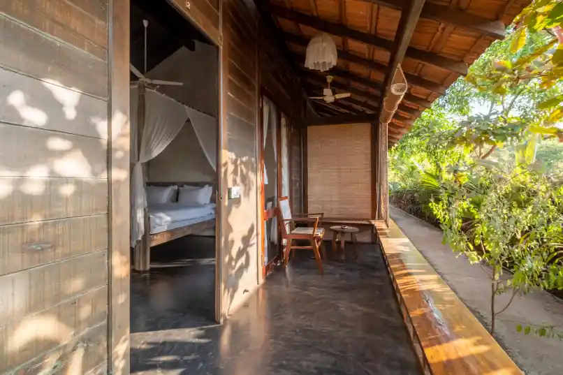 Each cottage is an oasis of rustic charm and artistic elegance. Each wooden cottage is a masterpiece in its own right, showcasing the artist’s flair and sensibility in every detail. The interiors are adorned with hand-painted details and open balconies that seamlessly bring the ocean breeze indoors, inviting the natural beauty of Goa into your stay. The cottages are inspired by the rustic charm of traditional Portuguese homes, creating a warm and inviting atmosphere that is both cozy and comfortable. Every detail is crafted to provide an experience beyond imagination.